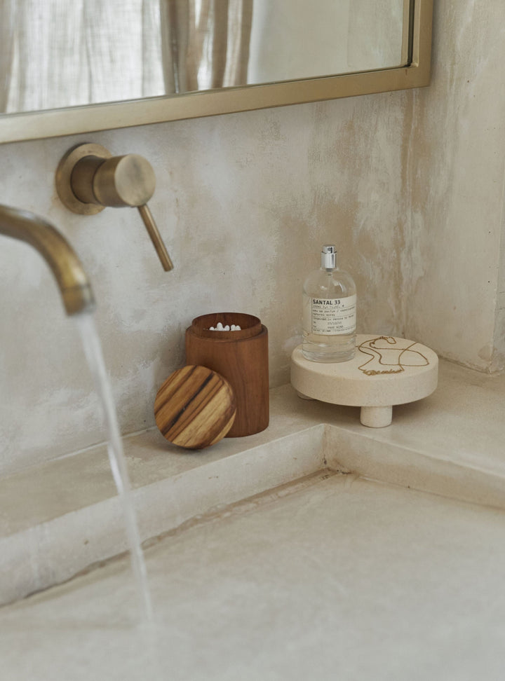 The Alora Stand showcases the expertise and dedication of the artisans who carefully sculpt and shape the sandstone to create its unique design. A family of artisans from Gianyar source sanstone from the island of Java to create their pieces. Each stand carries the mark of their craftsmanship, with its intricate details and smooth finish, making it a true work of art.