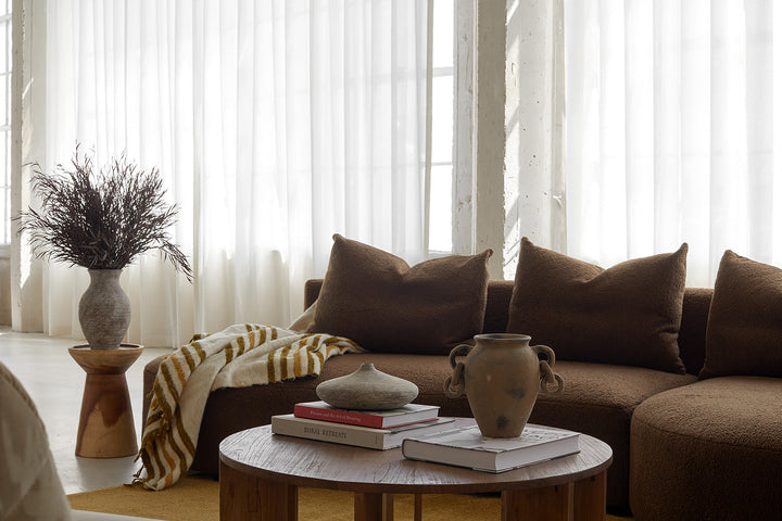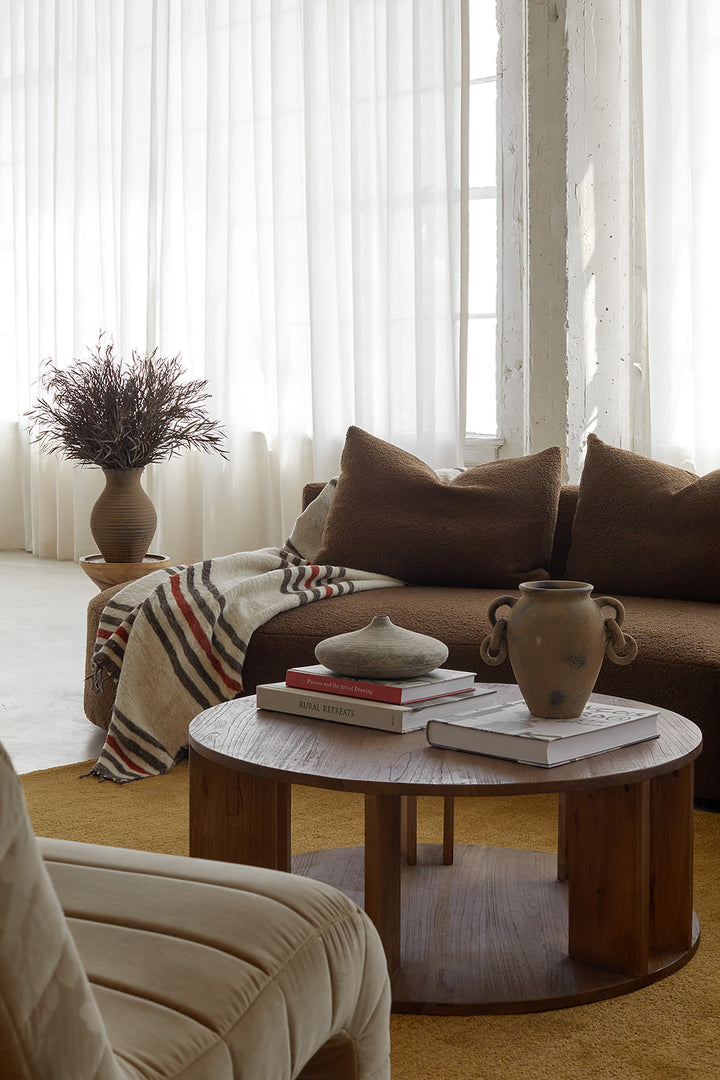 Handcrafted in Tonalá, Mexico, the Avery Vase is available in a deep rustic umber and the newly introduced distressed taupe. Its natural texture makes it a timeless addition to any seasonal decor. The vase’s elegantly flared opening is ideal for displaying a bouquet or an arrangement of stems, infusing any space with a touch of grace and sophistication.