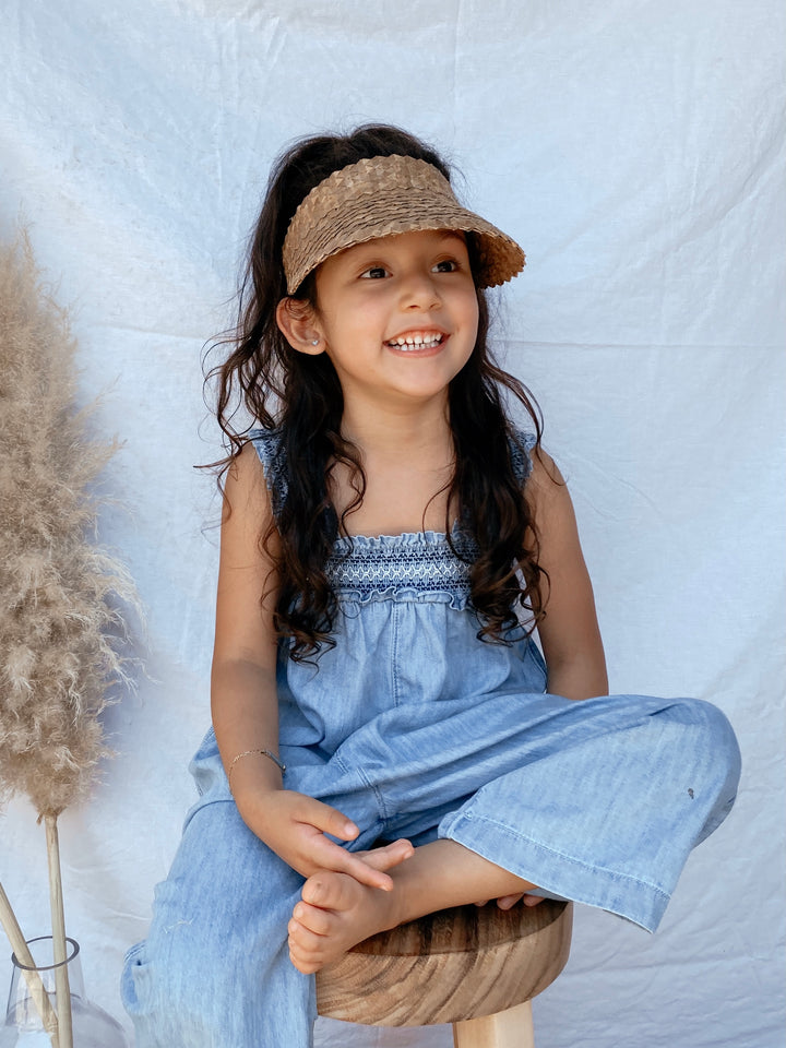 Our baby accessories are a must! Just like our signature Jitana Visor, the BB Visor features a woven straw material with open top and has an elastic band with stretch. Perfect for keeping your little one safe from the sun in the cutest way possible. Shop our adult sized Jitana Visors and match with your little!