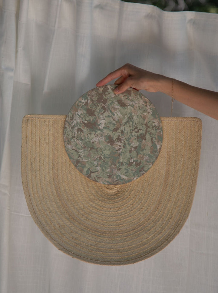Each wall hanging features palm leaves that are carefully hand-braided and sewn, creating intricate patterns and textures that evoke the beauty of nature. At its center, a meticulously crafted pine wood piece, hand-painted and plastered, serves as the focal point, adding a touch of rustic charm and warmth to any space.