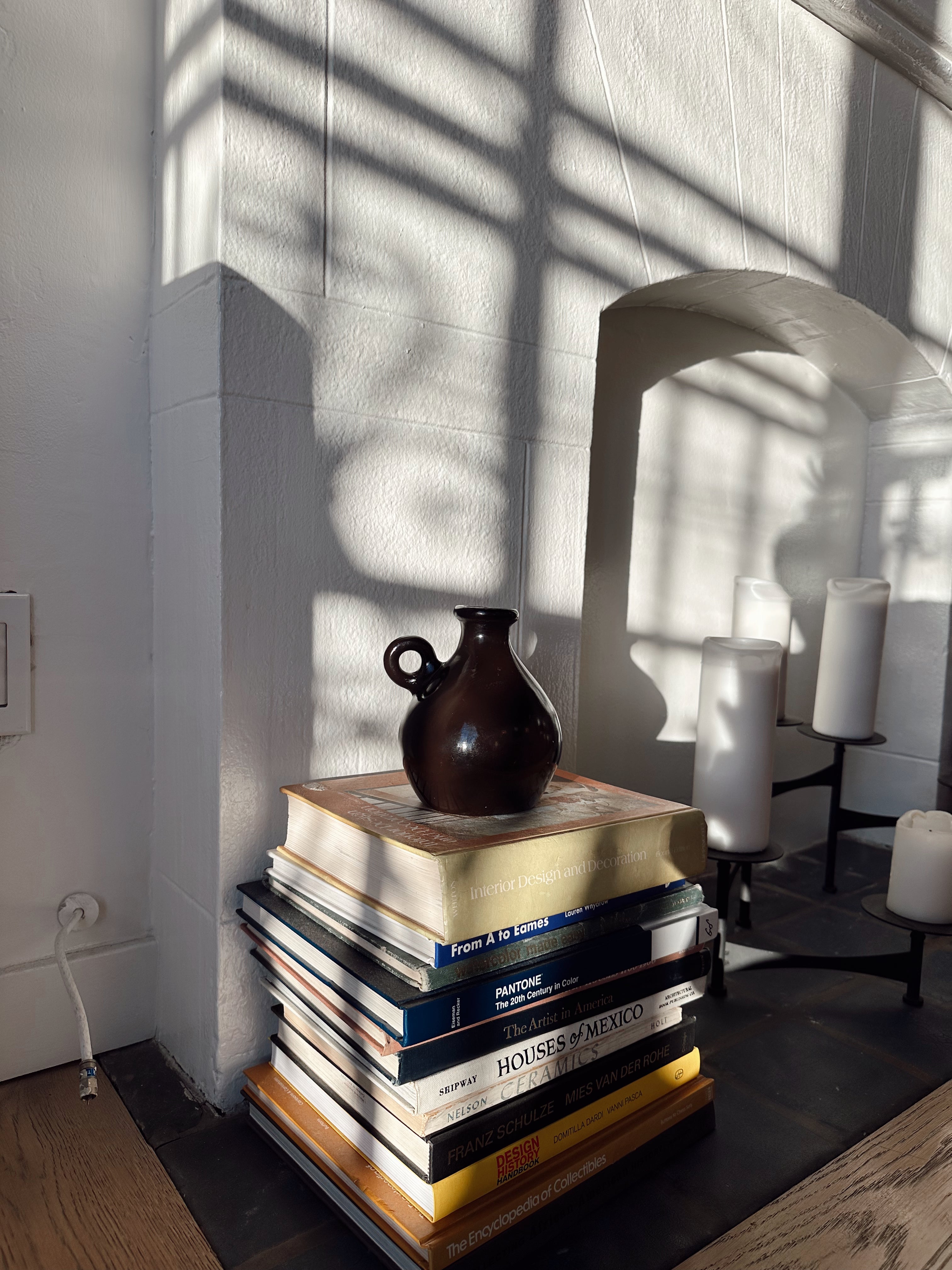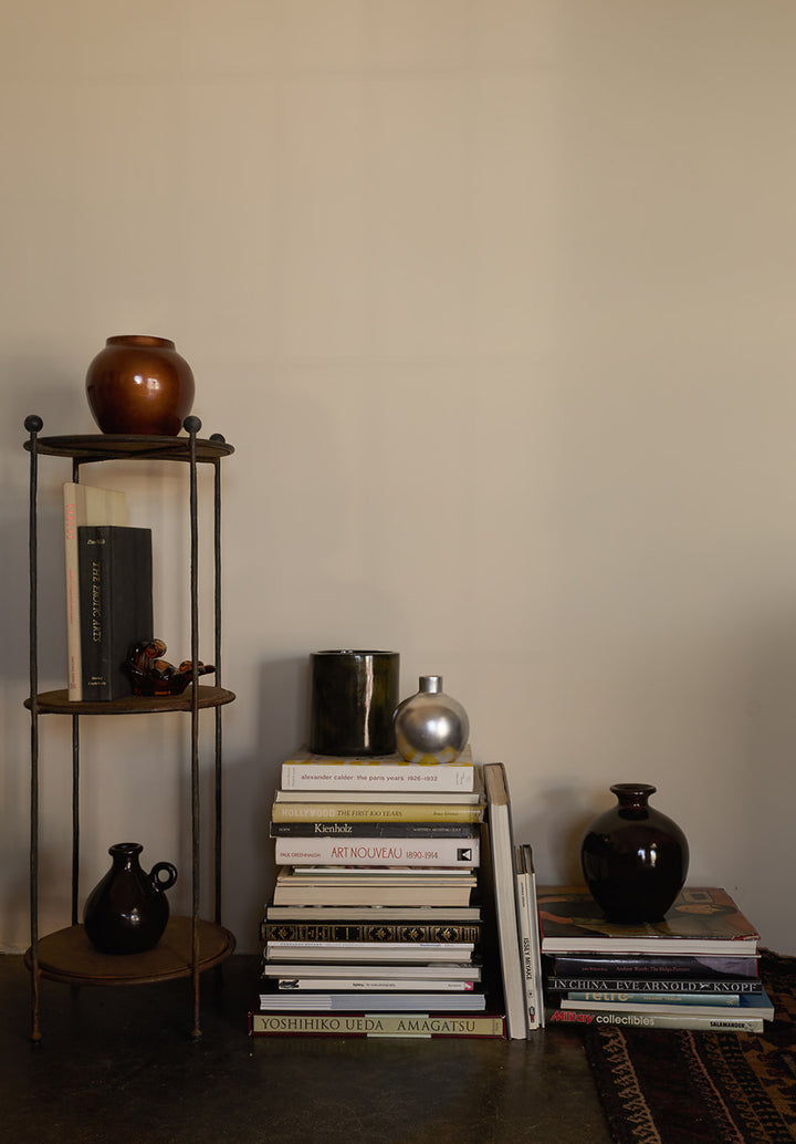 Its rounded silhouette, paired with a sculptural side handle, reflects balance and expression. The Tully Vase is layered and fired to achieve its lustrous chocolate finish, a celebrated piece that reveals tonal shifts that emerge with light and time.